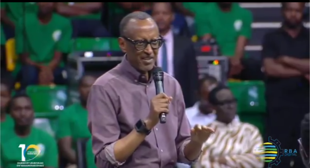 Mu Intare Arena, Perezida Paul Kagame ari kuganira n’urubyiruko ruhagarariye urundi mu Rwanda hose.